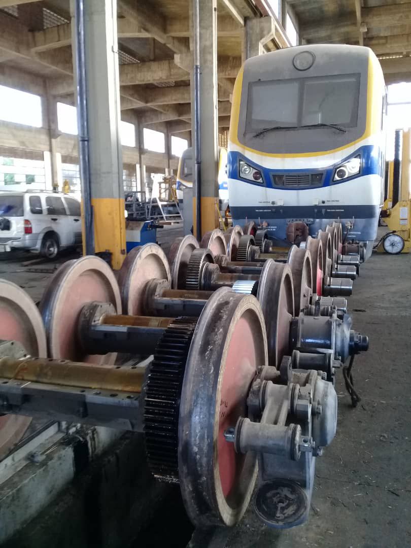 De igual manera, se lleva a cabo el desmontaje de los boggies de la locomotora VEN Df8-007, a fin de ser trasladados al Sistema Ferroviario Ezequiel Zamora, en Miranda, y someter a la mecanización a sus pares de ruedas, bajo perfil UIC 60.